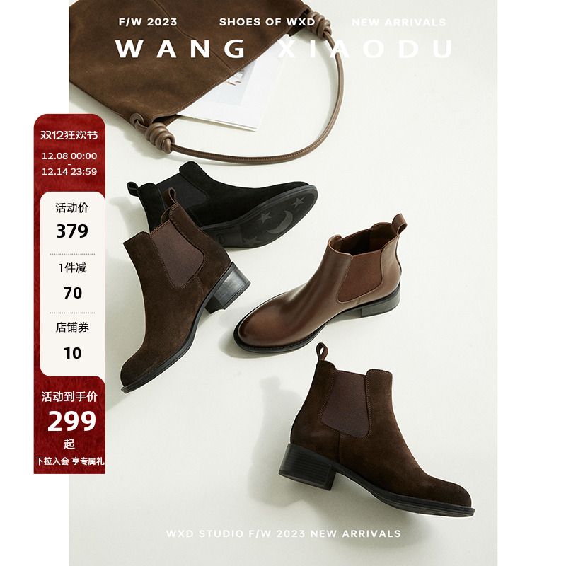 【王小毒】十年·缘分●4cm真皮切尔西短靴女粗跟加绒秀气瘦瘦靴