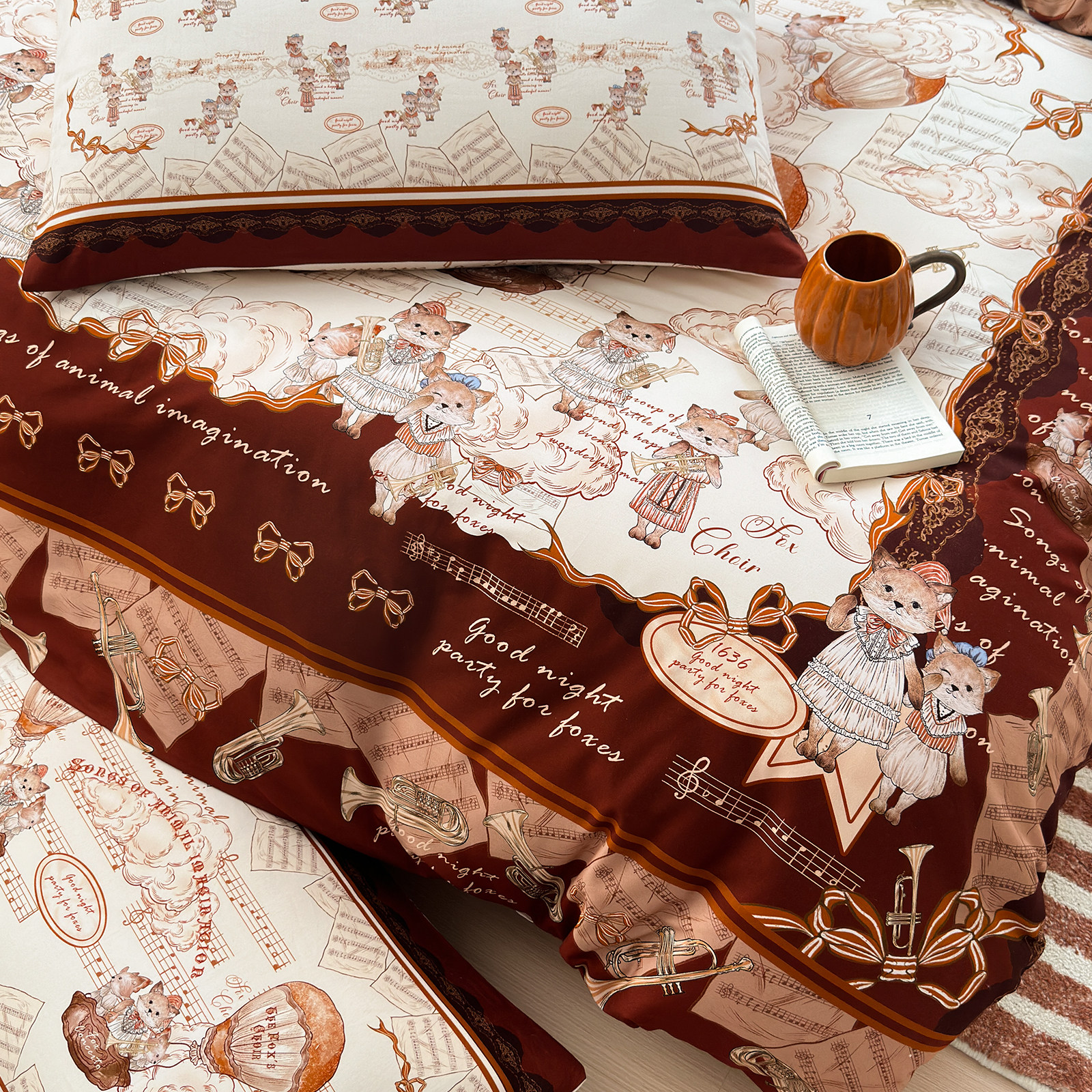 七分小眠音符乐队原创Lolita小狐狸秋冬款加厚纯棉磨毛床上四件套
