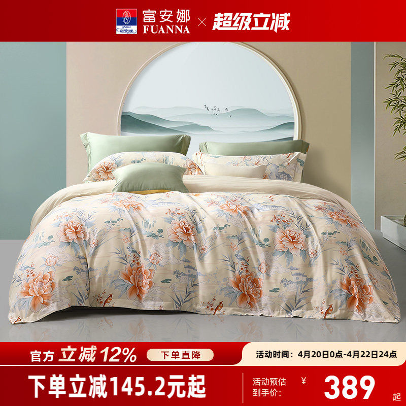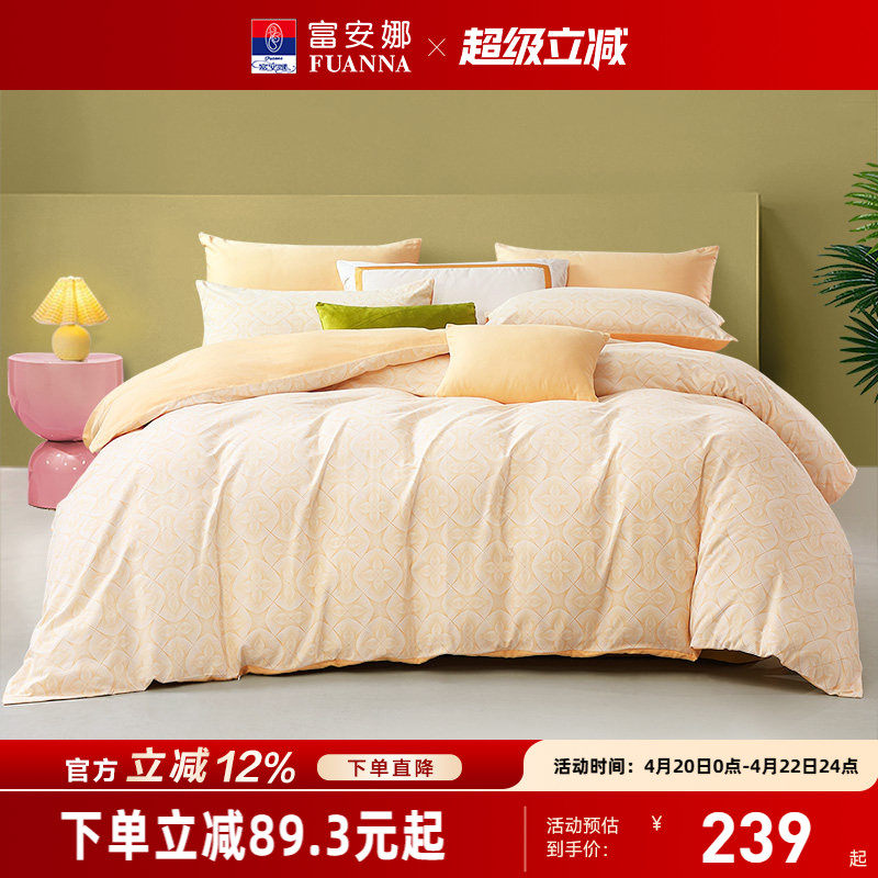 富安娜家纺60支长绒棉磨毛四件套纯棉全棉加厚秋床上用品保暖被套