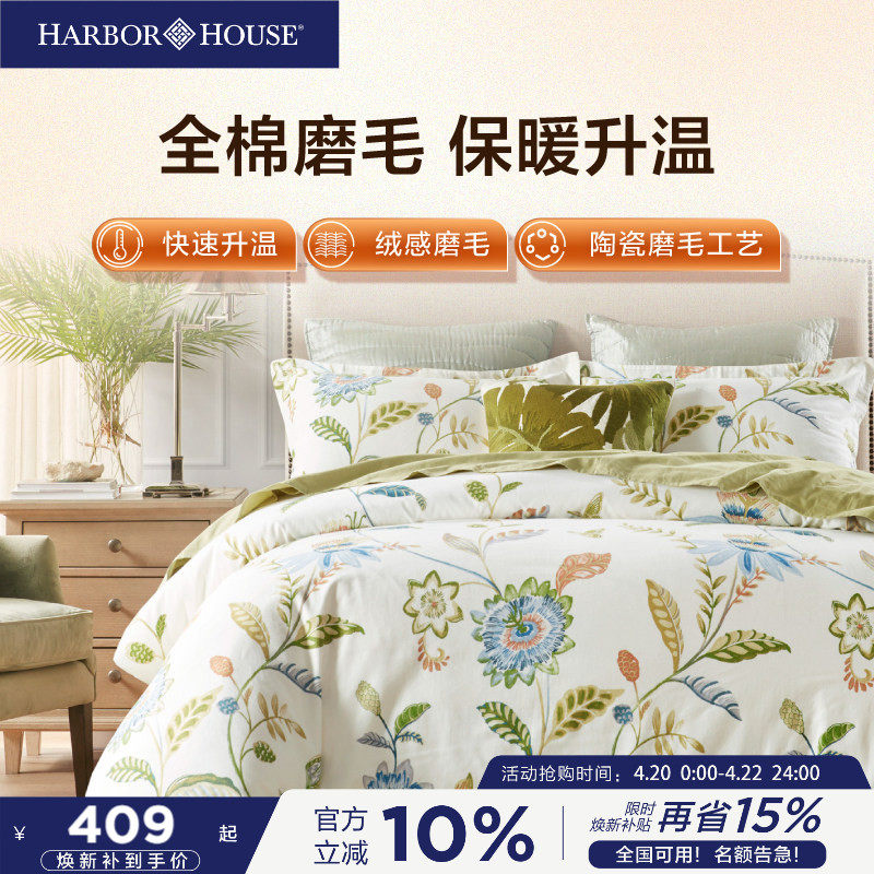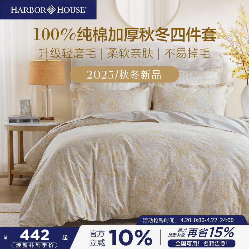 HarborHouse磨毛四件套美式长绒棉加厚套件纯棉床品秋冬床单枕套