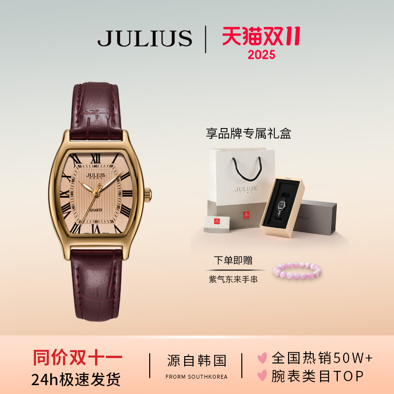 聚利时手表女款官网正品小众复古酒桶形学生女表石英防水手表544