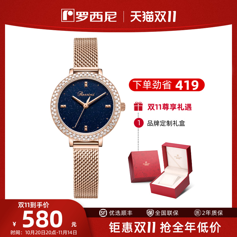罗西尼手表女官方正品简约气质ins风满天星石英女表5200016