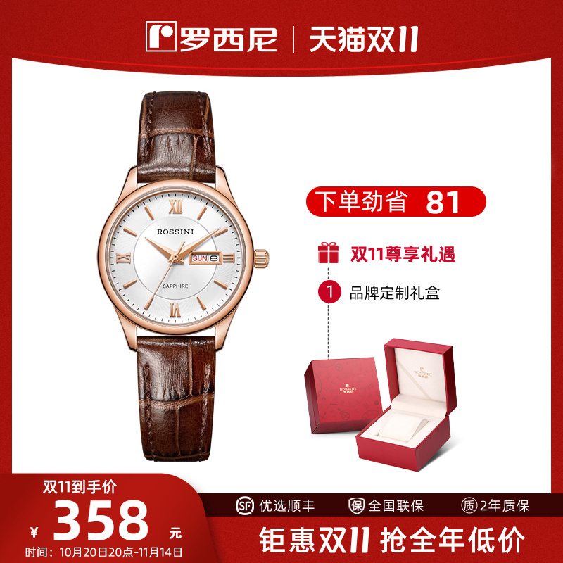 罗西尼官方手表女气质小众红表女士石英表正品防水女表620776