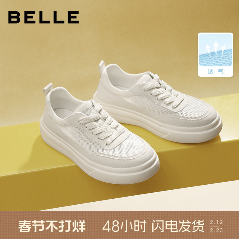 百丽男士布鞋透气运动休闲板鞋男26新款厚底增高面包鞋子8YF01DM5