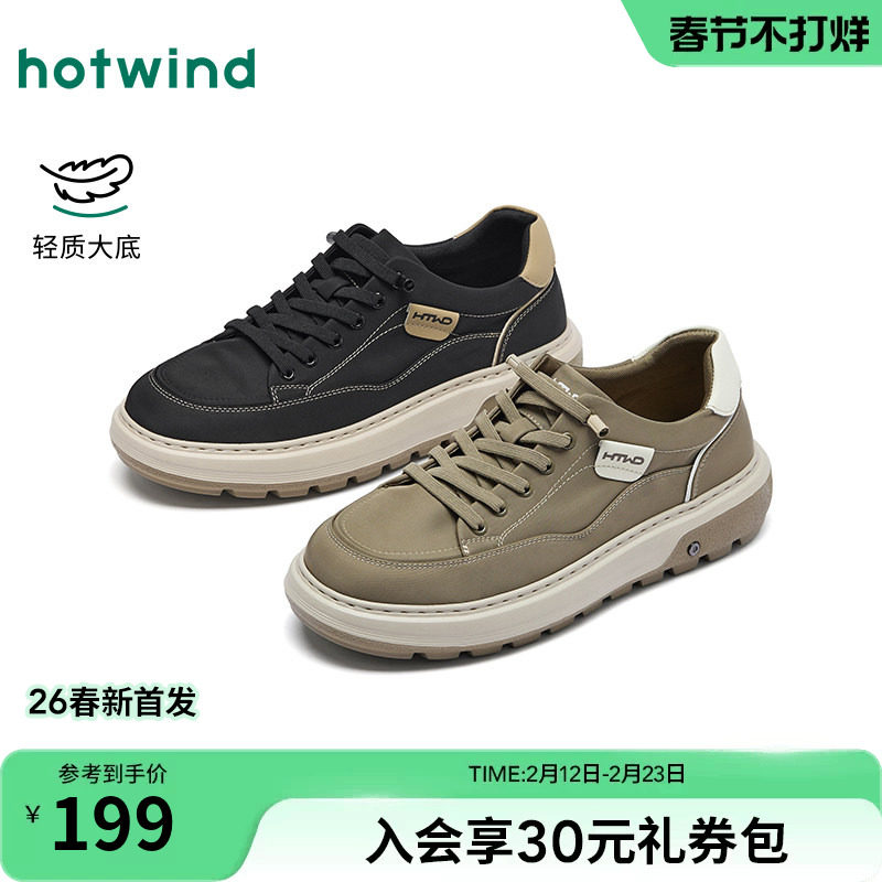 热风男鞋2026年春季新款男士时尚黑色舒适布鞋松紧带厚底休闲鞋子