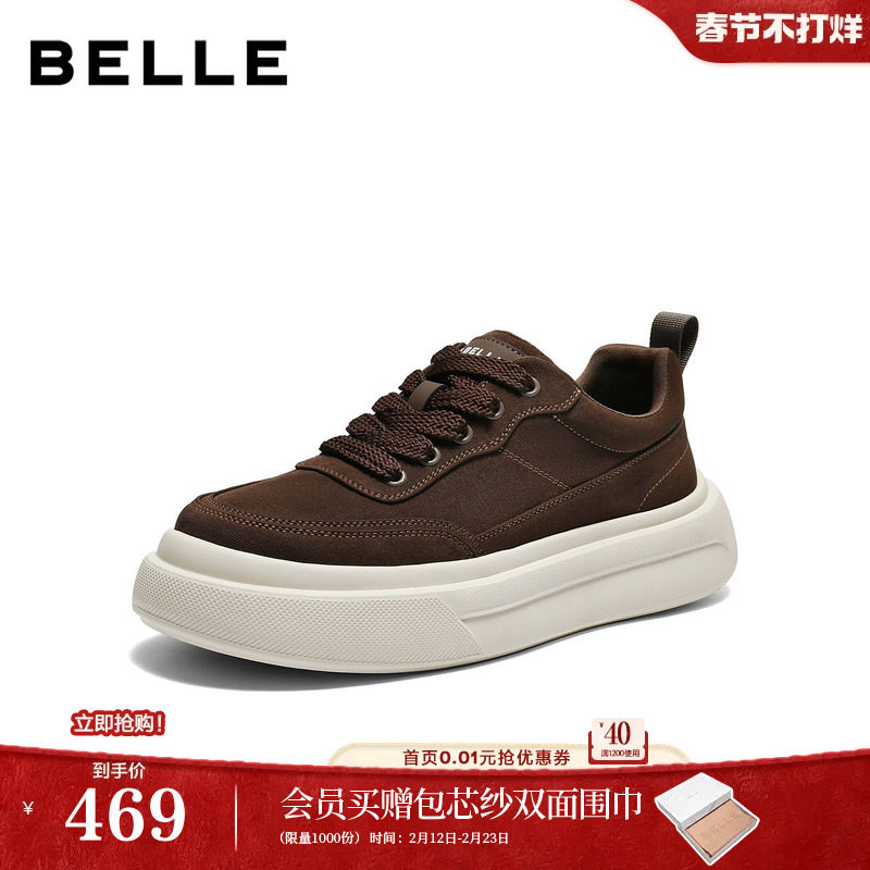 百丽男鞋厚底增高休闲布面板鞋男士新款商场款大头面包鞋8YF01DM5