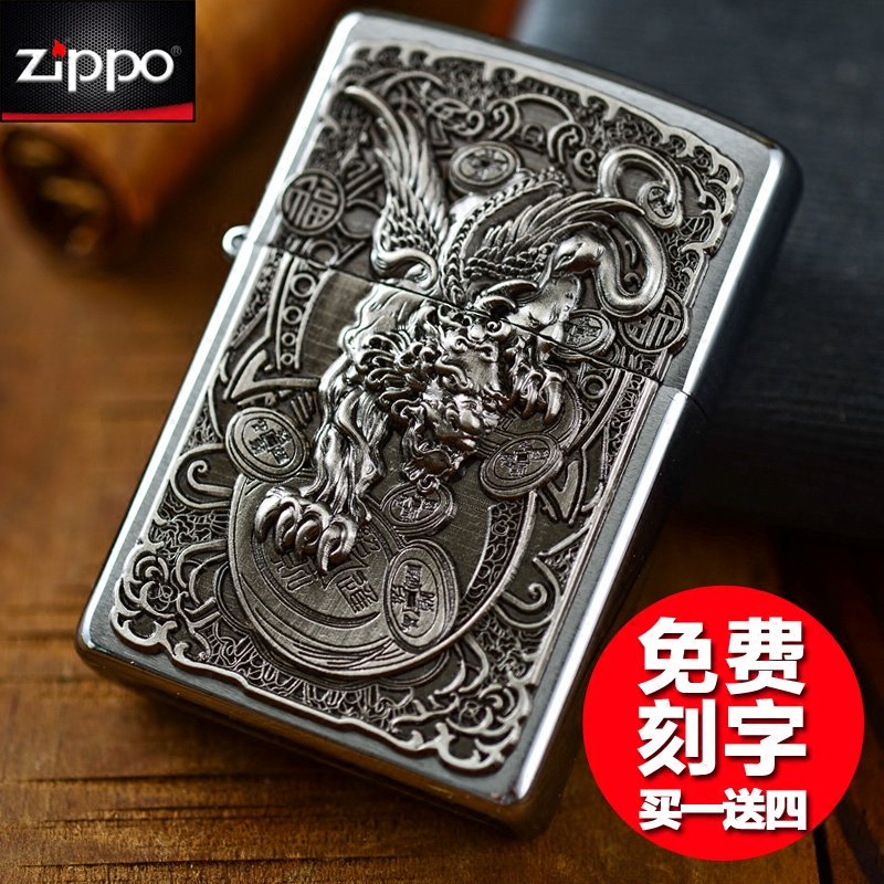 原装正版zippo打火机纯银色貔貅浮雕创意防风之宝正品火机油