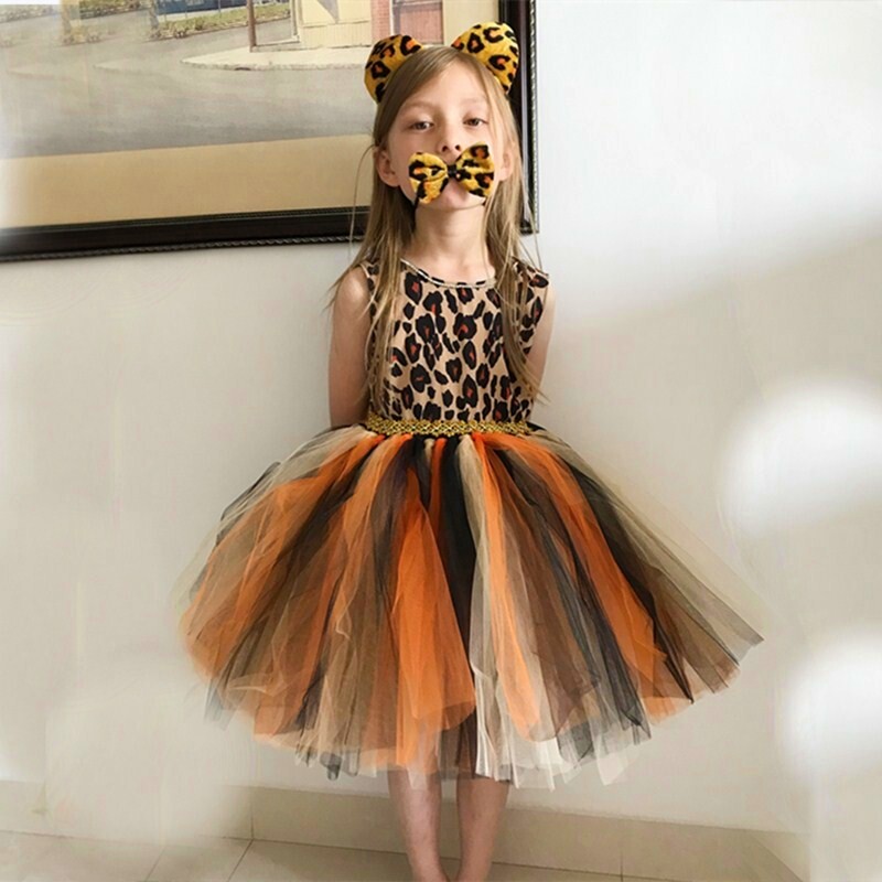 CONNY儿童拉丁舞服装国标舞蹈练功服表演考级服女连衣裙豹纹绑带
