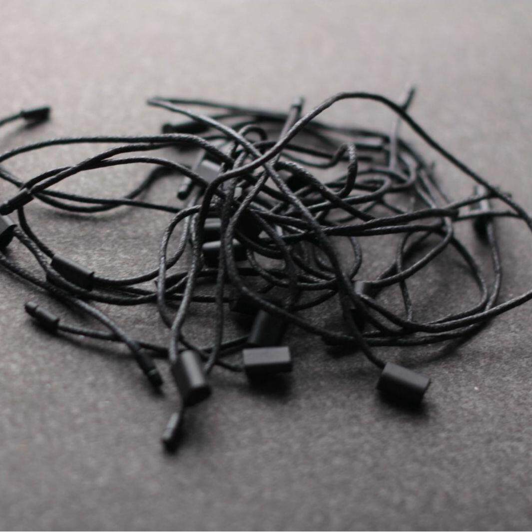 衣服吊粒方扣挂牌绳 棉绳蜡绳 吊牌绳塑料扣服装 米色黑色吊绳线