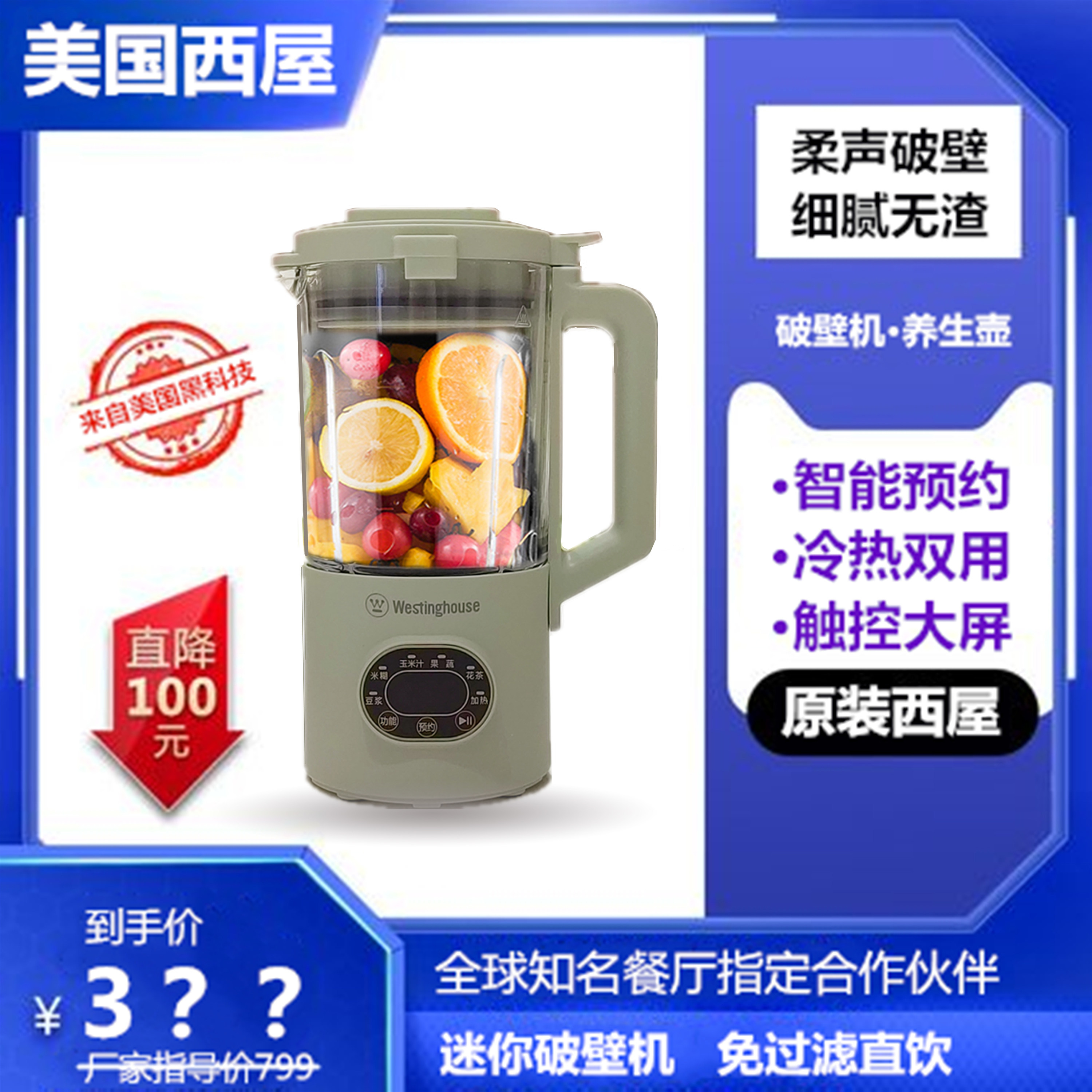美国西屋0465全自动家用破壁机多功能加热养生料理豆浆静音搅拌机