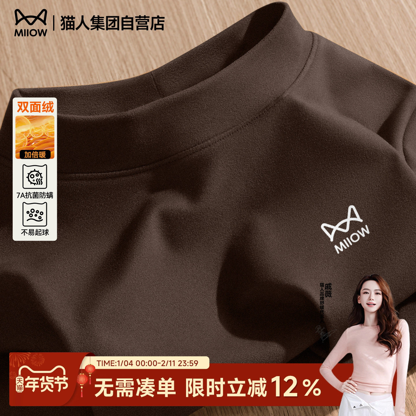 猫人男士打底衫2025冬季双面绒保暖半高领长袖t恤加绒加厚上衣男J