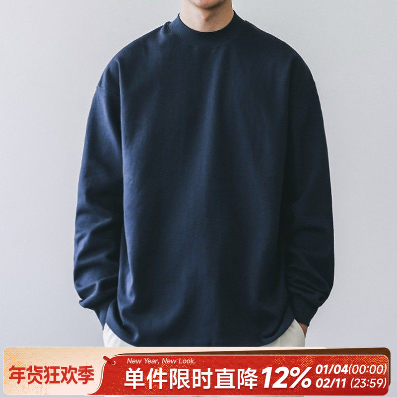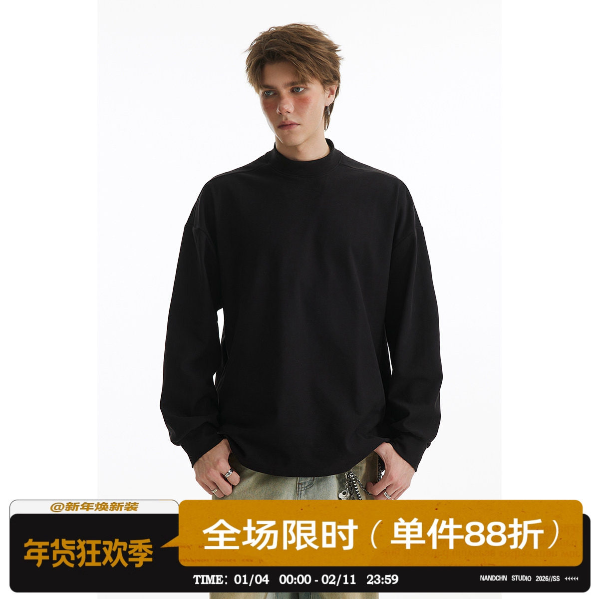 300g阔型纹嘿马七作日系男女春秋款重磅长袖T恤半高领内搭打底衫