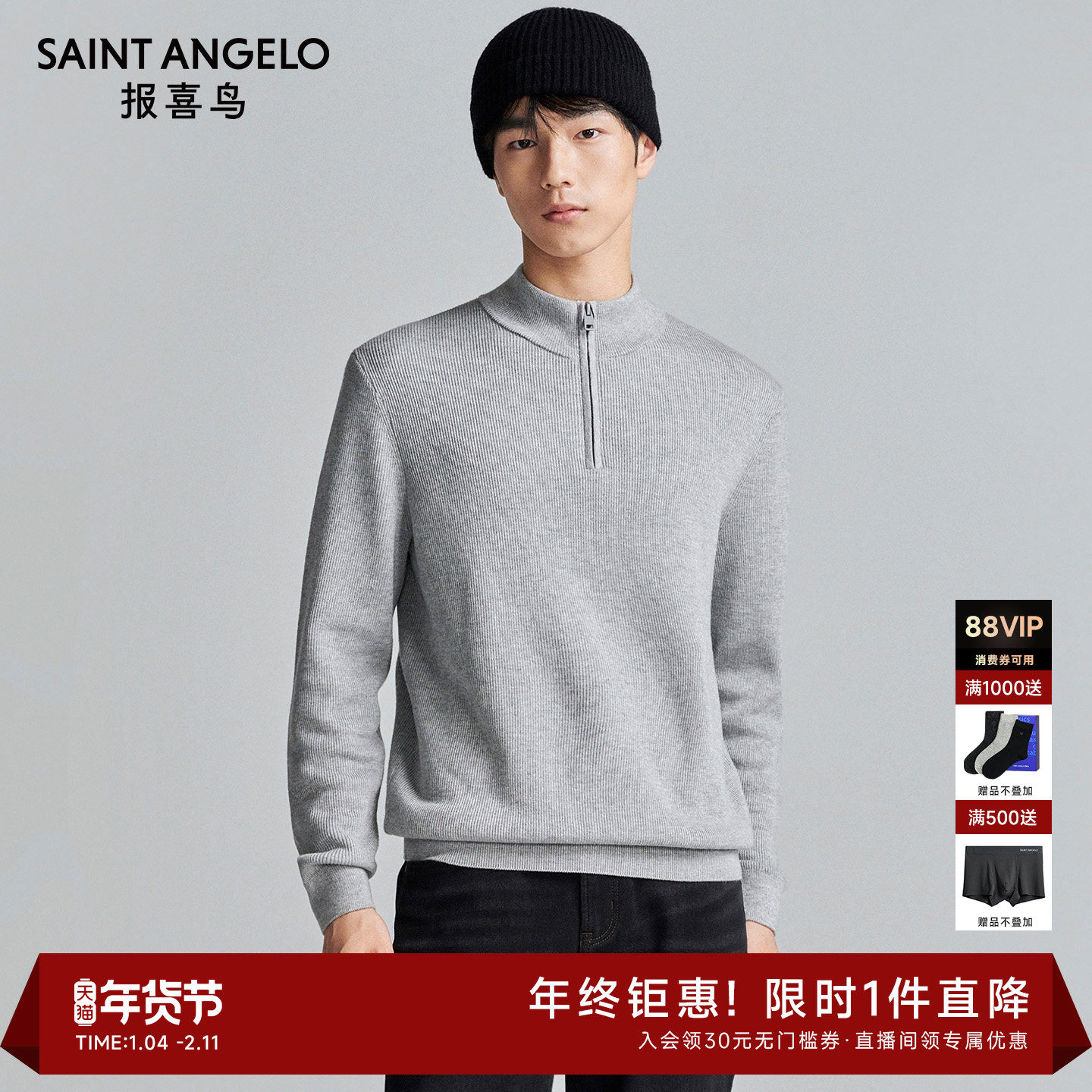 【半高领拉链】报喜鸟秋季新款男士商务休闲长袖羊毛衫内搭毛衣男