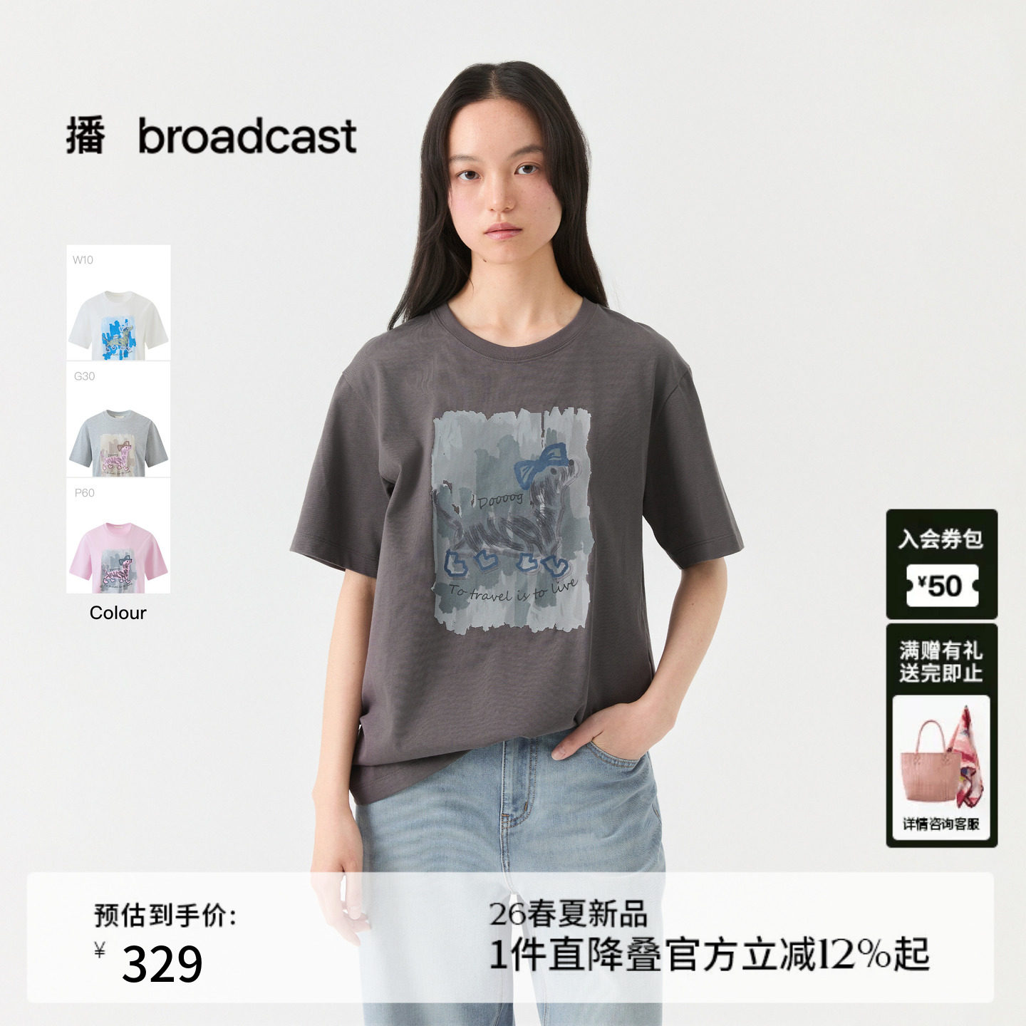 播小狗印花圆领短袖T恤女26夏季新款宽松松弛感上衣DDT2YD5635