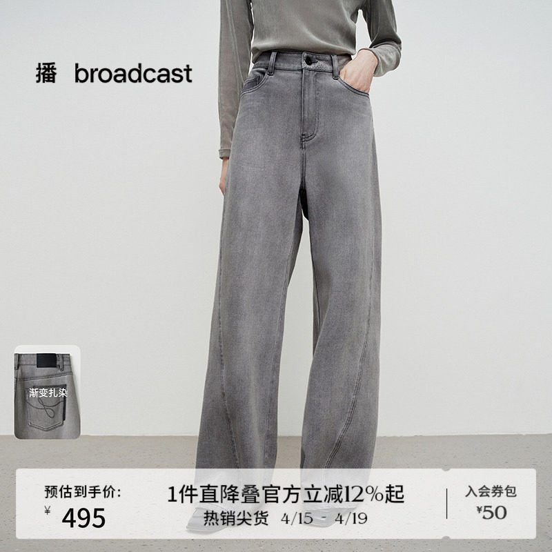 播商场同款高腰水洗灰牛仔裤女春秋新宽松淡人阔腿裤BDS1KD1509