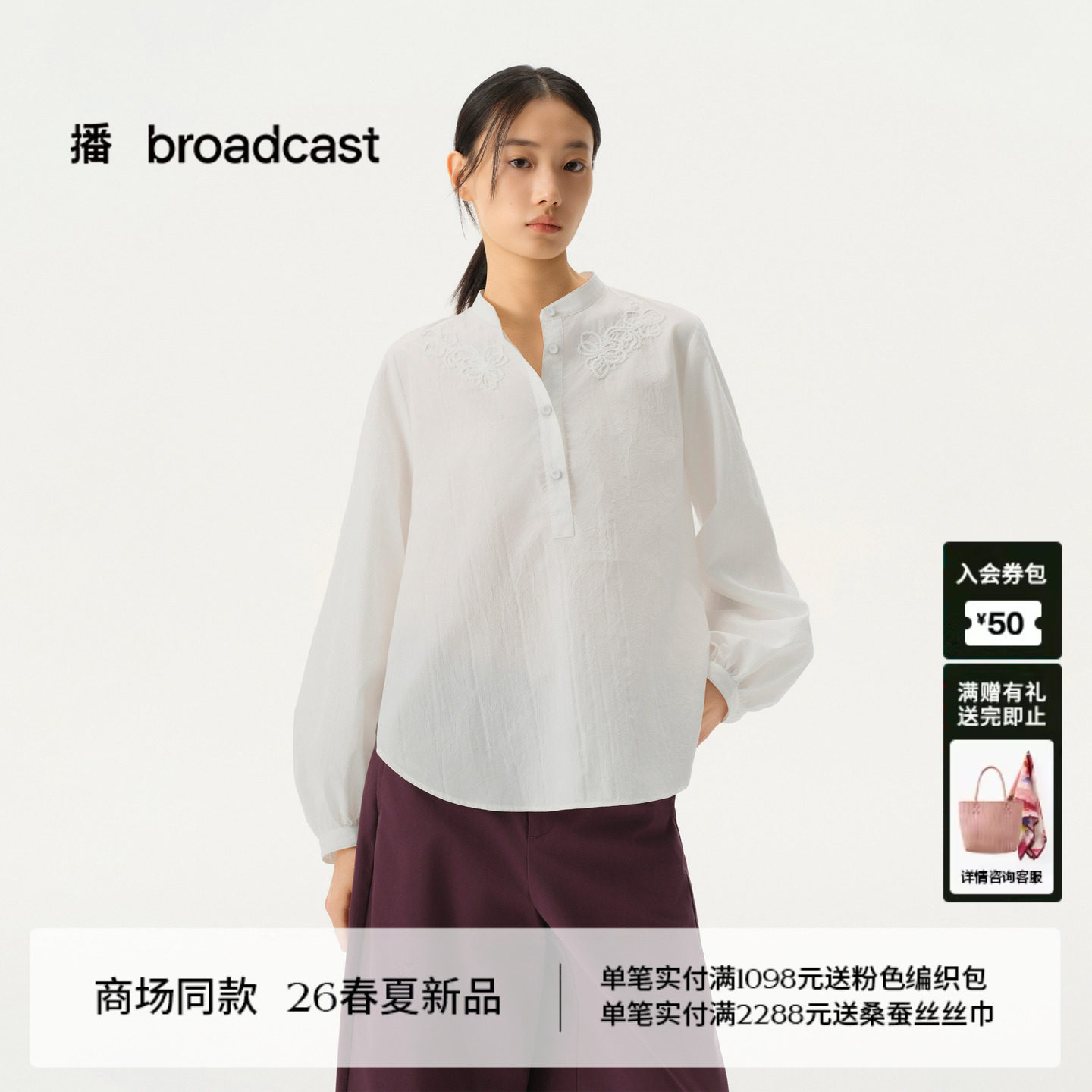 播商场同款马尾绣绣法松弛感宽松白衬衫女26春季新款BDT1HD1102