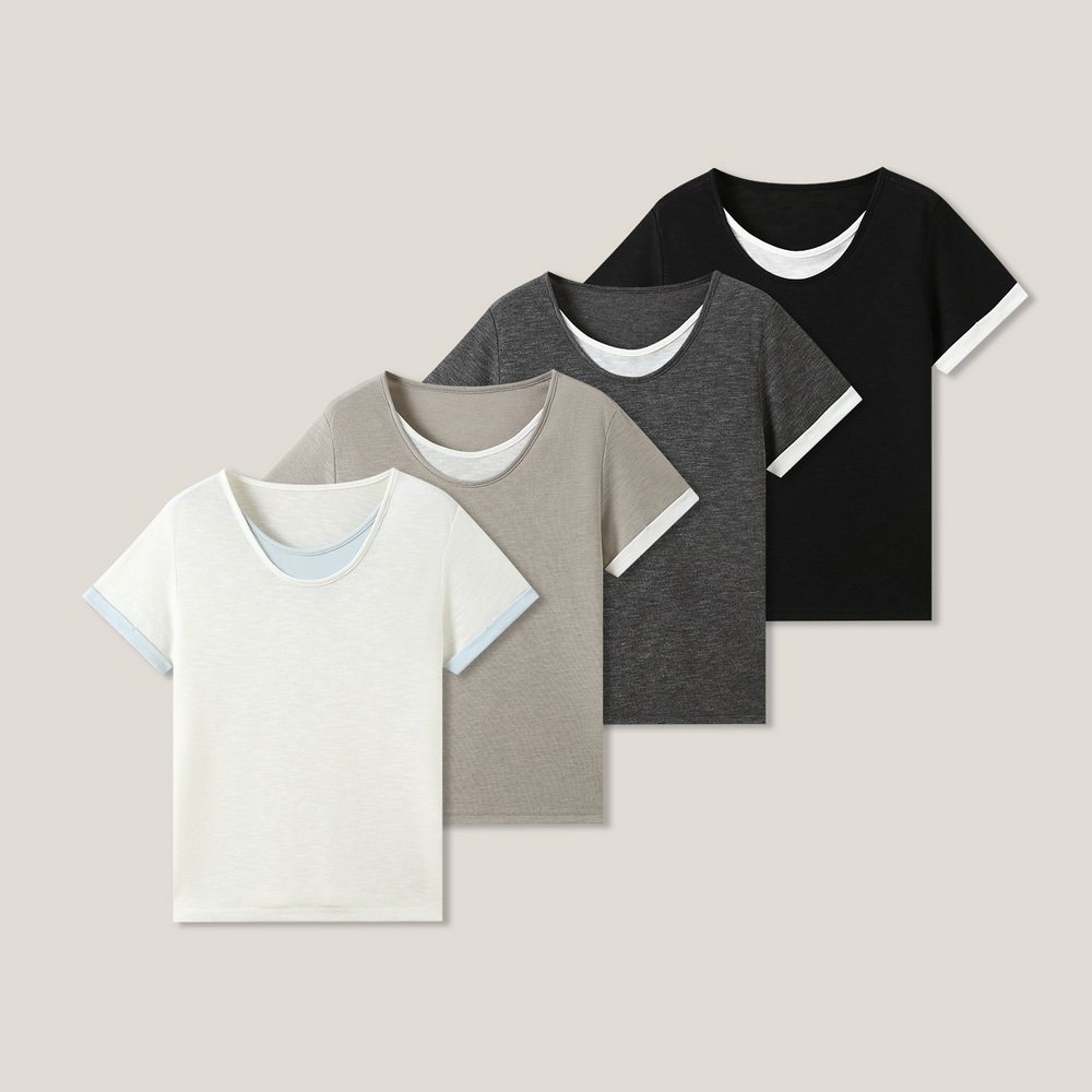 4-7F 撞色简约休闲百搭圆领假两件短袖T恤 SS28027