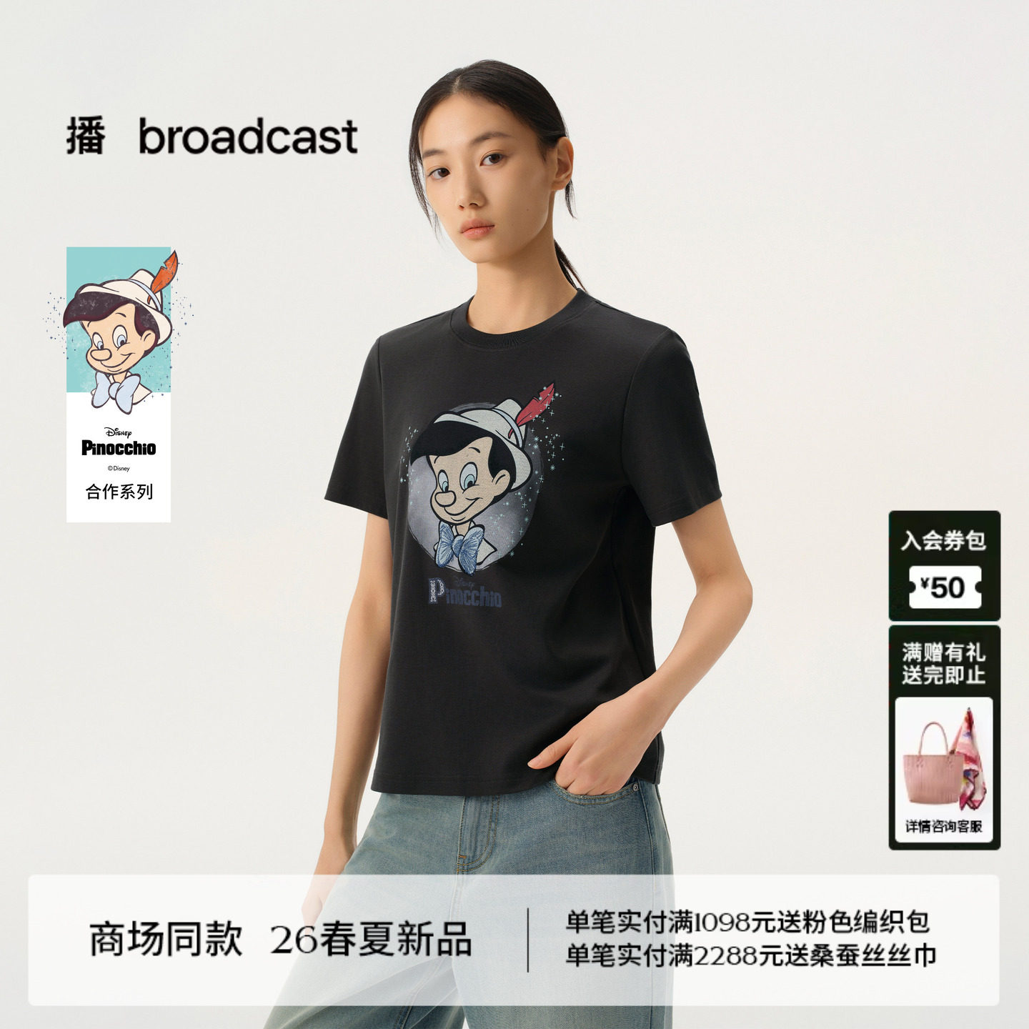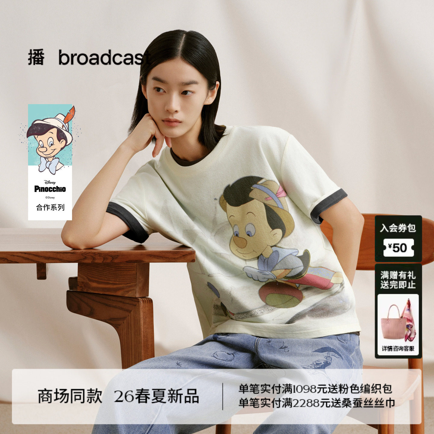 播商场同款【匹诺曹合作】治愈童真 落肩短袖T恤女26春BDT1YD1253