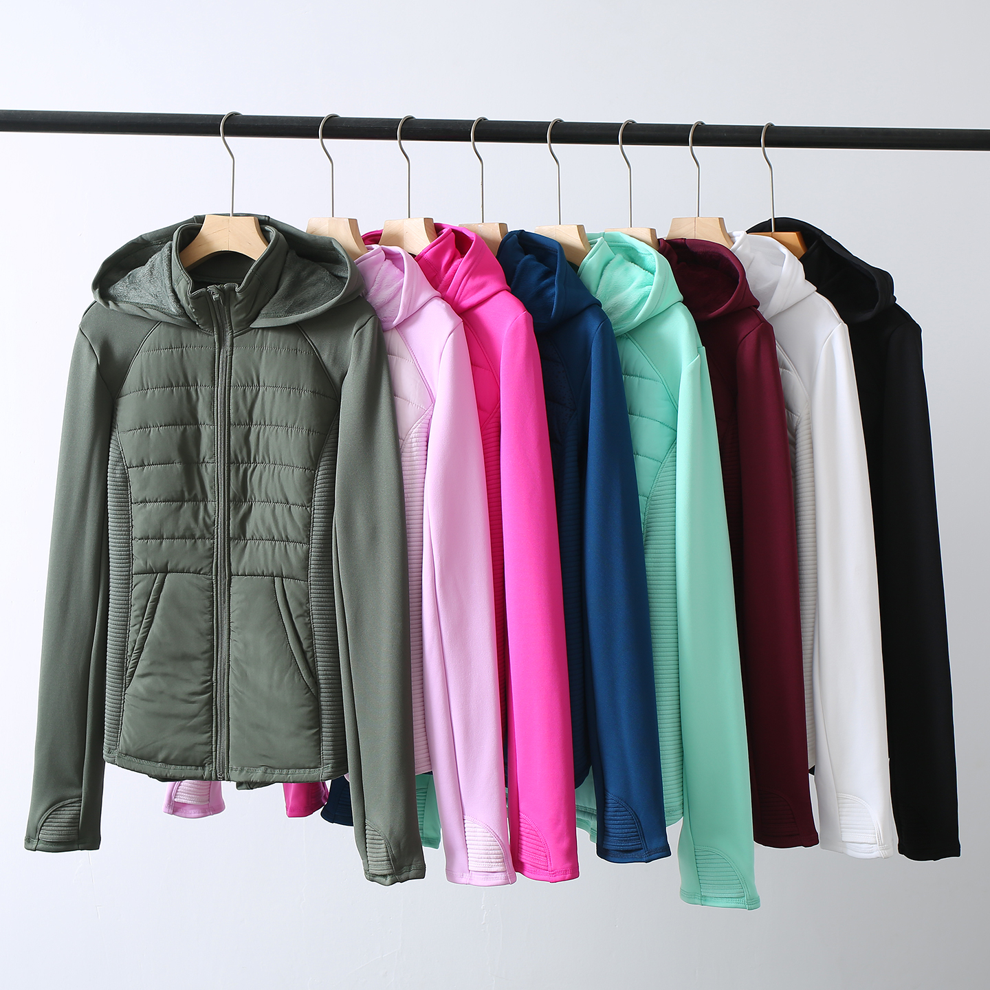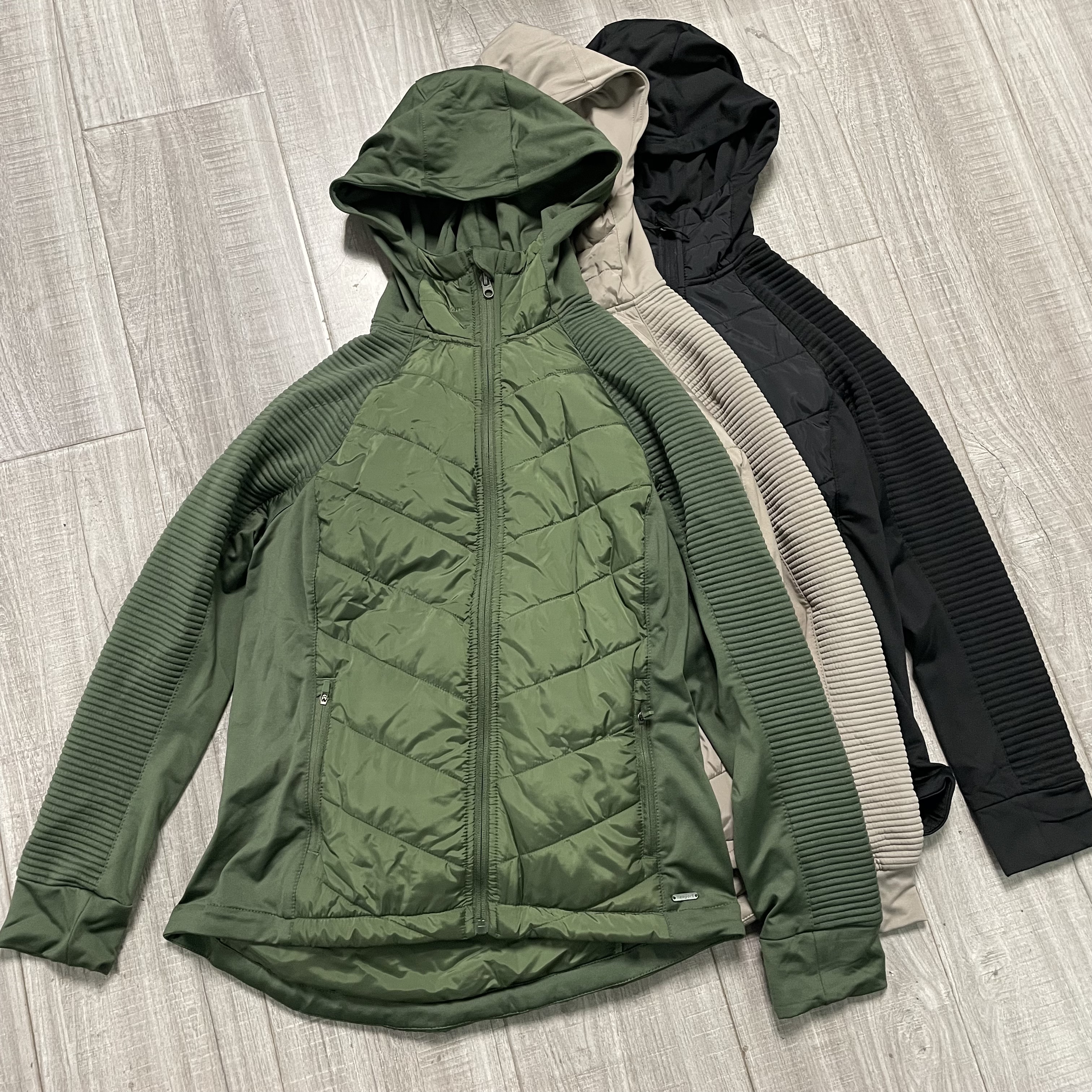 美国单!55美金!户外运动休闲连帽拼接修身轻便保暖外套薄棉衣女