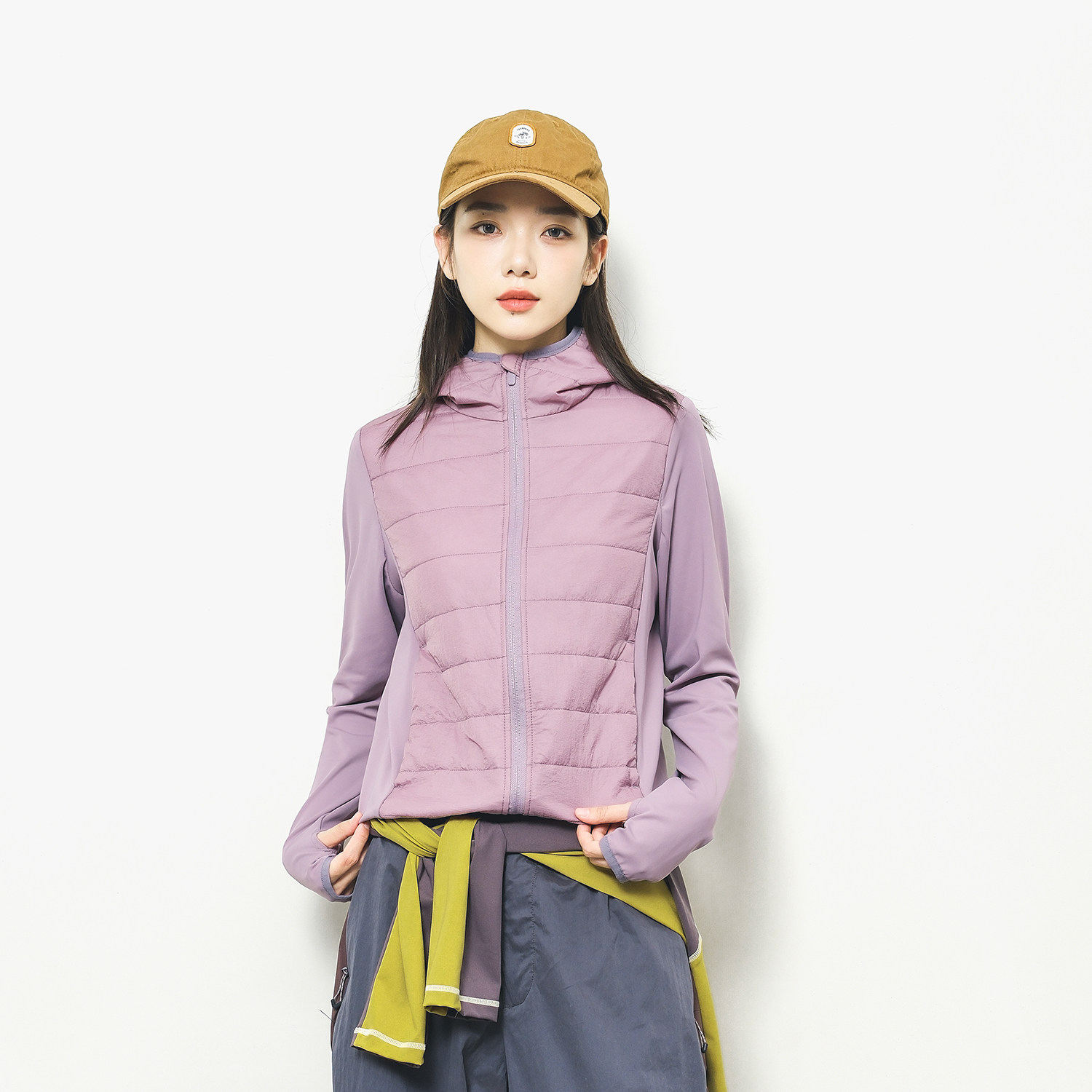 Epicsocotra冬季城市运动休闲瑜伽连帽棉服修身休闲保暖薄棉衣女