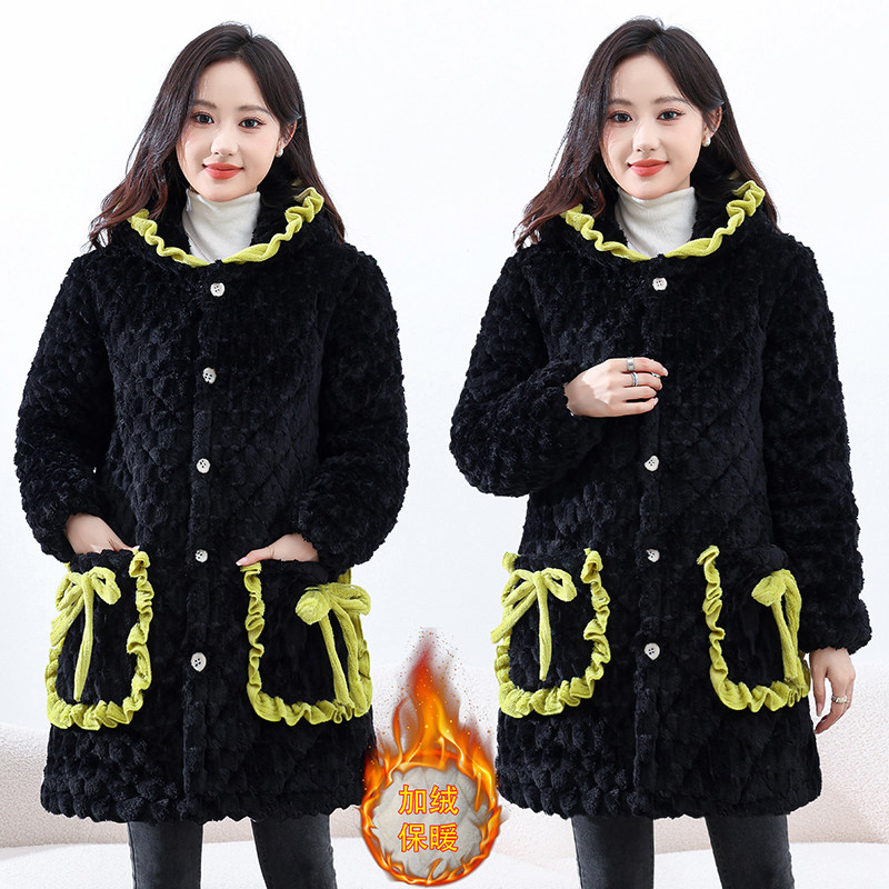 年轻款加绒加厚连帽棉服女冬季中长款修身显瘦洋气保暖外套可外穿