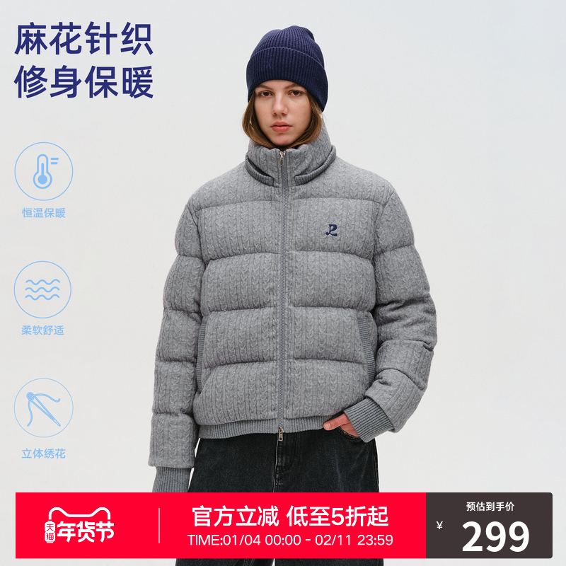RASS绞花组织短款棉服 潮牌冬季新款修身保暖抗寒连帽外套棉衣