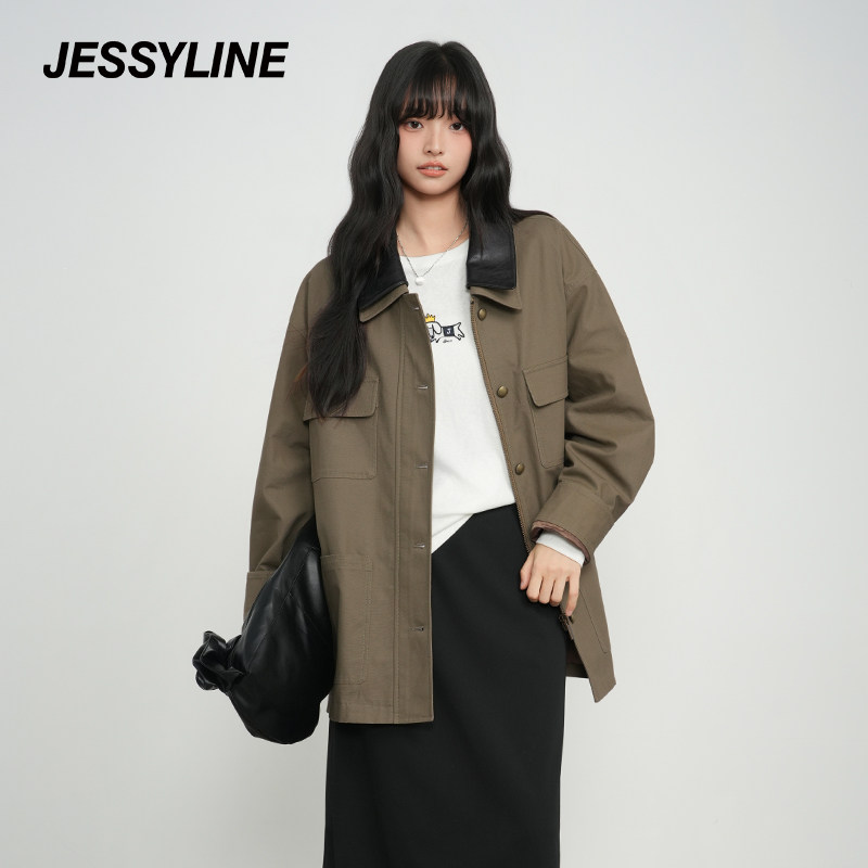 杰茜莱2025秋季新款时尚卡其色工装风宽松休闲外套 jessyline