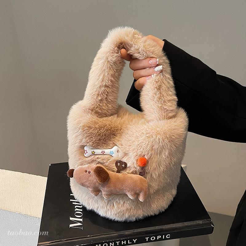 秋冬季小众毛茸茸包包女2025新款百搭手提包精致迷你小拎包毛毛包