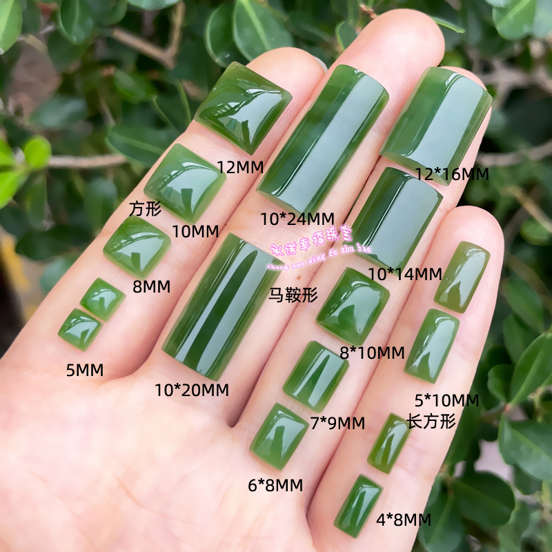 天然和田玉碧玉菠菜绿正方长方蛋面无裂8MM10MM戒面裸石配石价