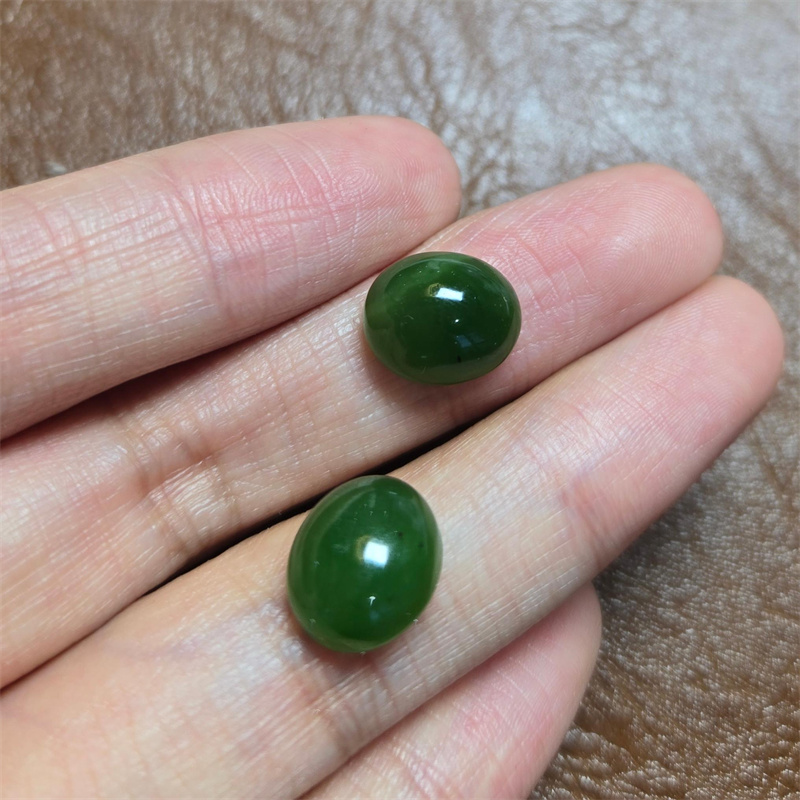 批发俄罗斯碧玉天然和田玉蛋形戒面戒指吊坠镶嵌配石绕线diy配件