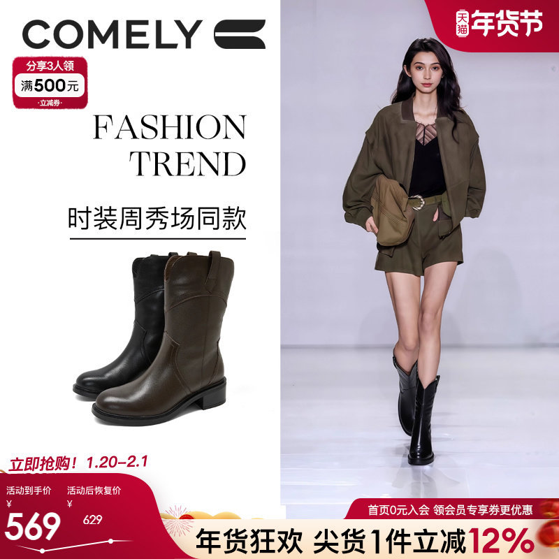 女真皮中筒靴高跟相关商品