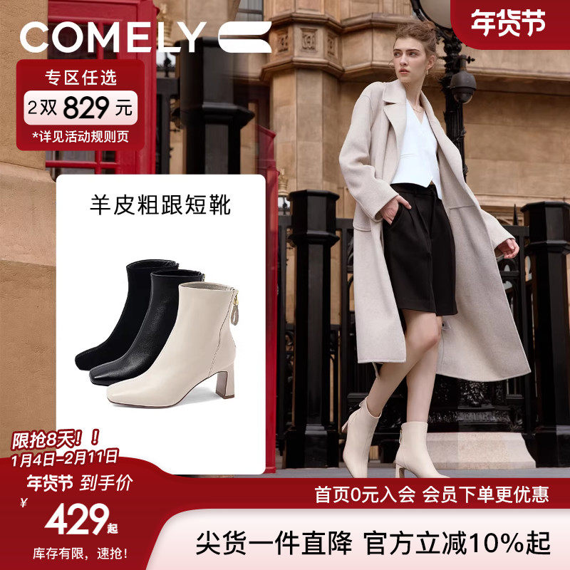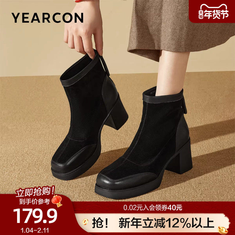 - 粗跟短靴女 复古