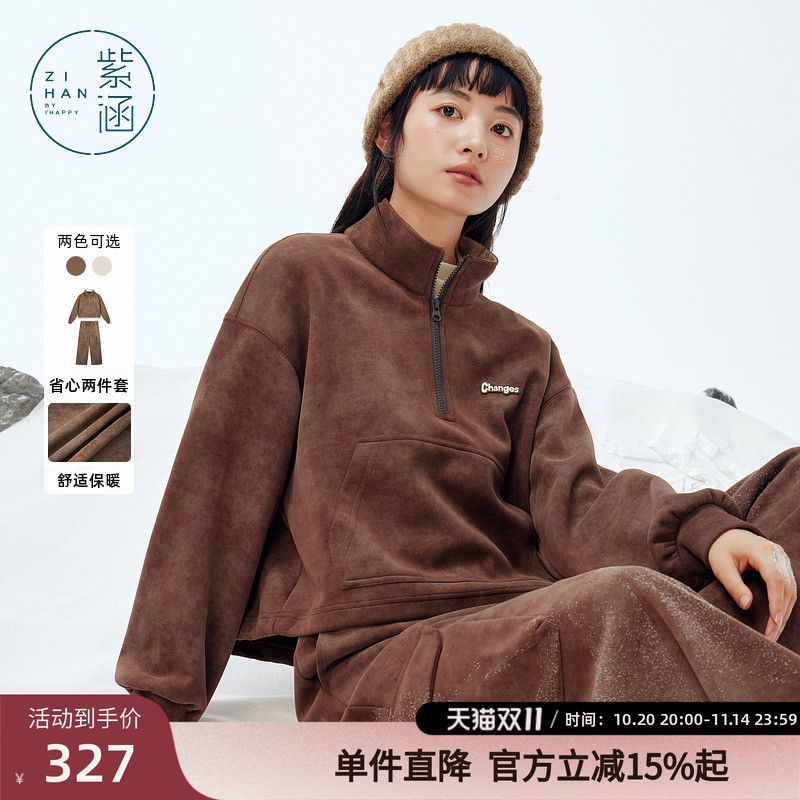 紫涵运动休闲风立领拉链卫衣外套工装休闲裤子两件套装女冬季新款
