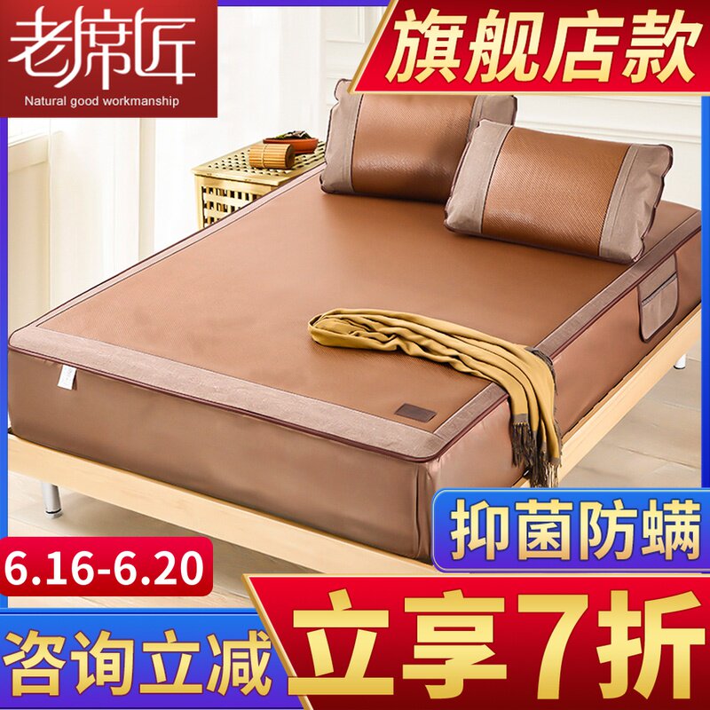老席匠床笠式藤席凉席三件套加厚冰丝席1.5米1.8m床罩款席子双人