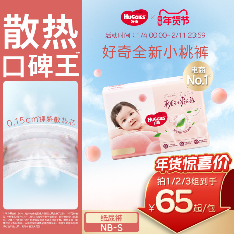 好奇小桃裤铂金装纸尿裤NB码/S码尿不湿尿垫亲肤透爽散热正品