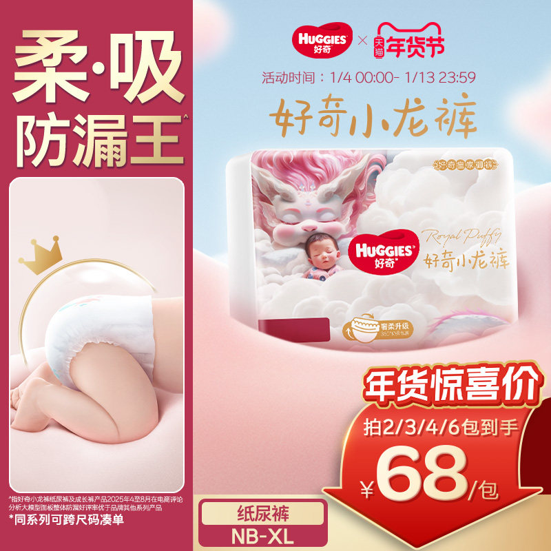 【百亿补贴】好奇皇家御裤小龙裤麒麟纸尿裤拉拉裤MLXL尿不湿多包