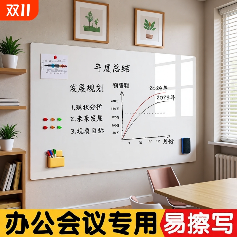 磁性白板写字板办公双面墙挂式画板儿童支架式磁吸小黑板可擦家用教学可移除黑板墙贴看板记事板商用磁力白板