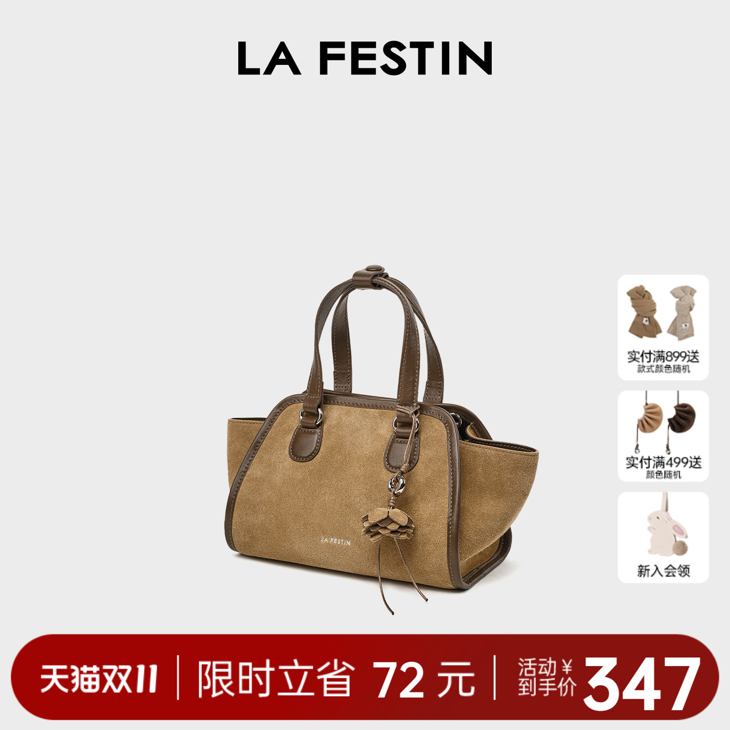 拉菲斯汀麂皮绒包包新款秋冬保龄球包通勤女包斜挎包手提波士顿包