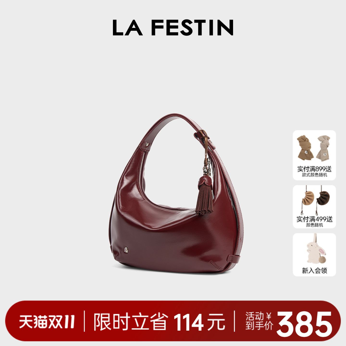 拉菲斯汀团仔包2025新款头层牛皮红色女包月牙包手提斜挎包半月包