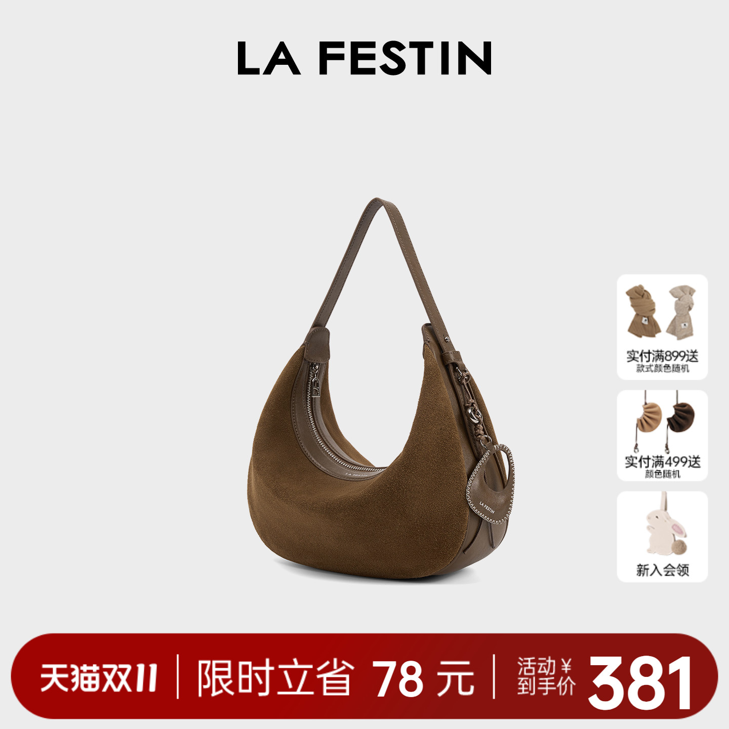 拉菲斯汀麂皮绒门票包大容量斜挎女包通勤极简HOBO包腋下托特包