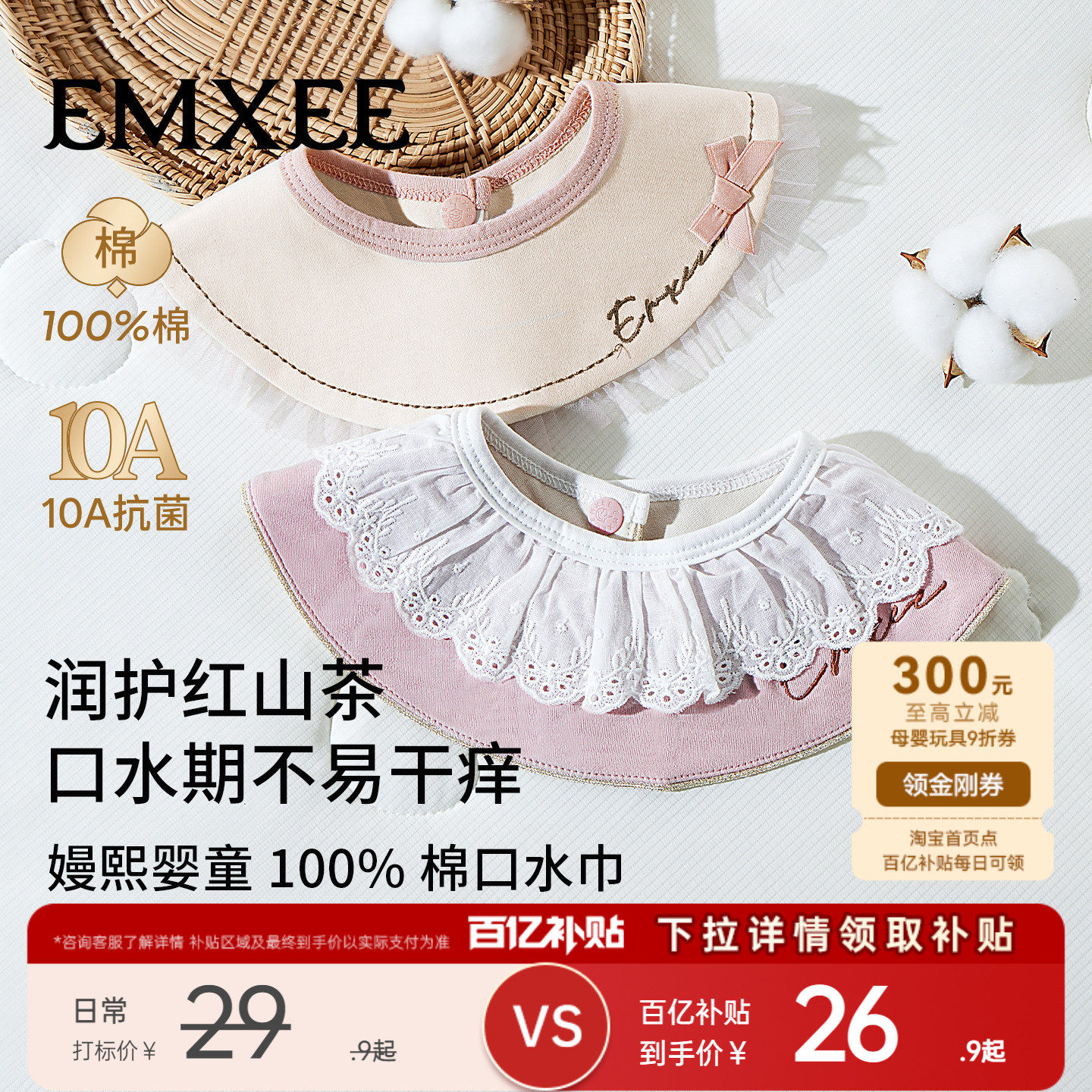 全棉时代婴儿手帕面巾纯棉纱布口水巾洗脸毛巾宝宝新生儿围嘴方巾