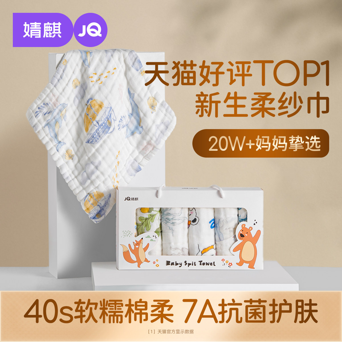 嫚熙口水巾婴儿毛巾纱布小方巾新生婴儿a类纯棉儿童洗漱巾拍嗝巾