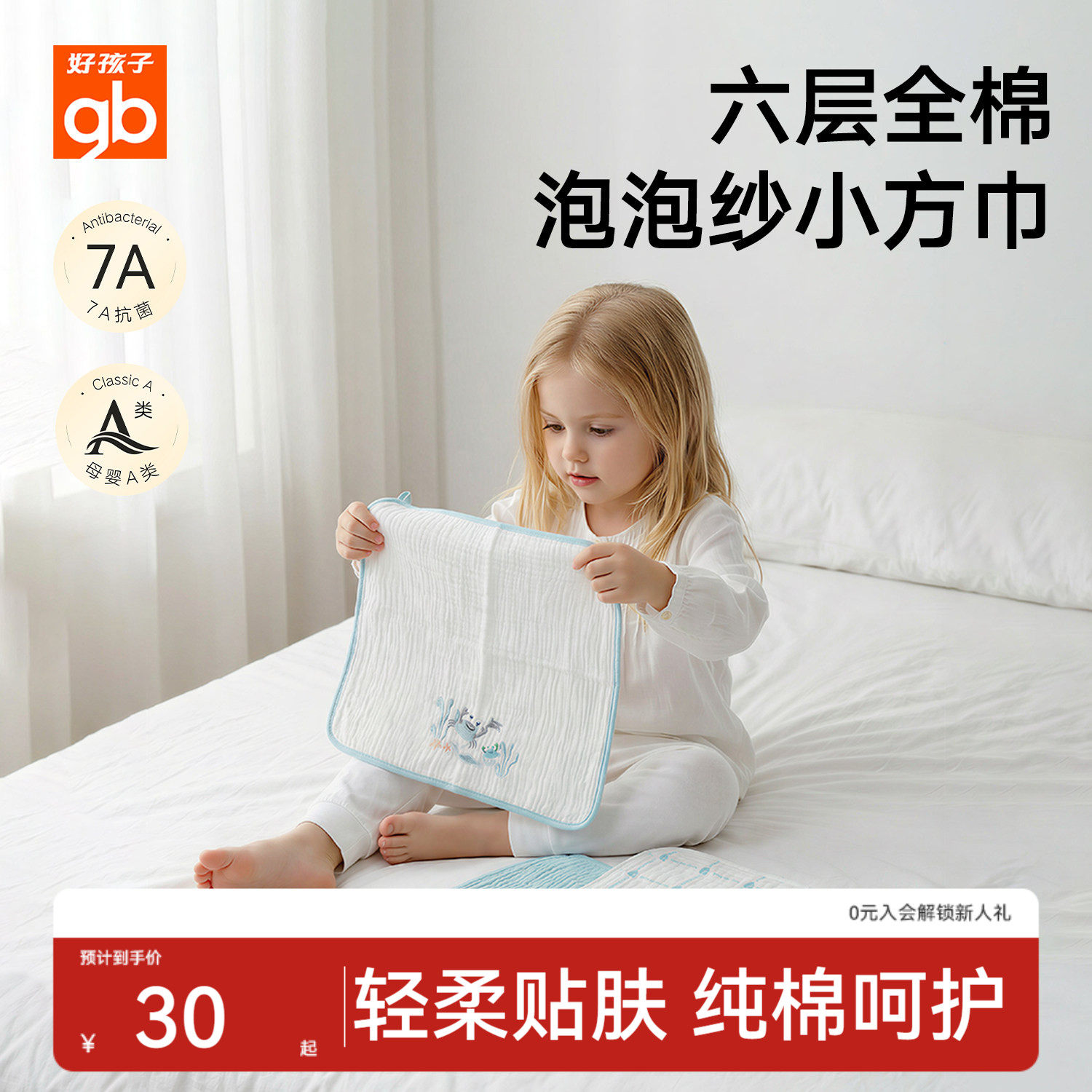 gb好孩子婴儿洗脸巾纱布毛巾口水巾新生儿宝宝儿童a类纯棉小方巾