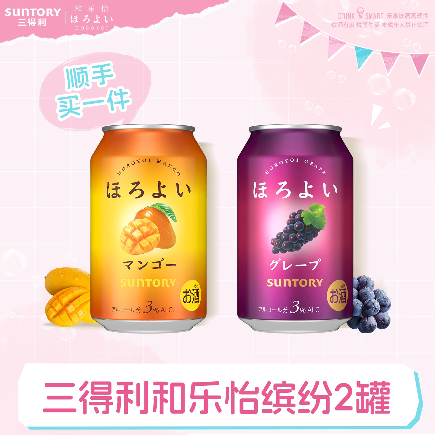 【顺手买一件】三得利和乐怡预调鸡尾酒缤纷2罐 低度果味鸡尾酒