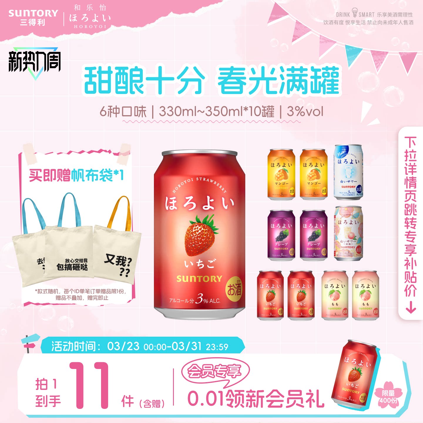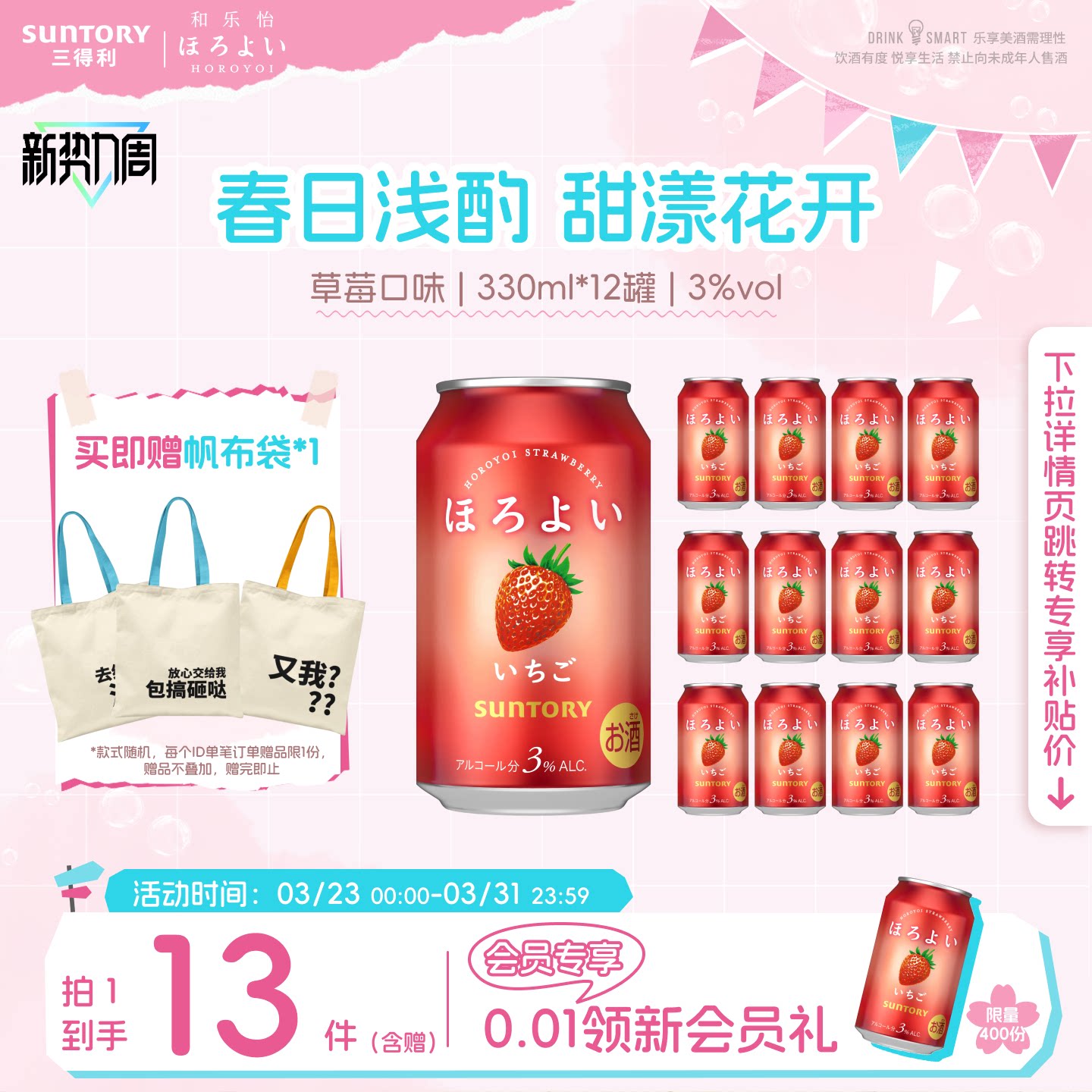 下拉详情领优惠|三得利和乐怡气泡网红微醺低度预调鸡尾酒12罐3°