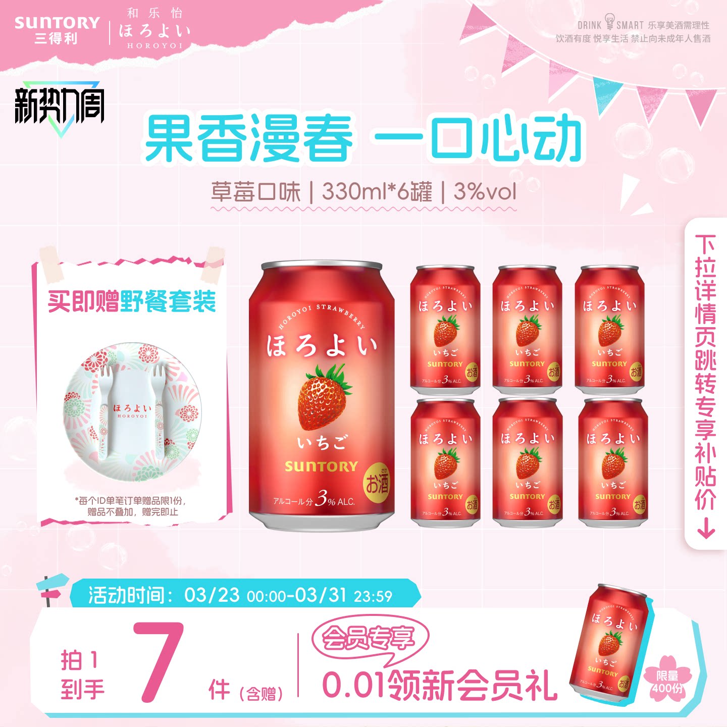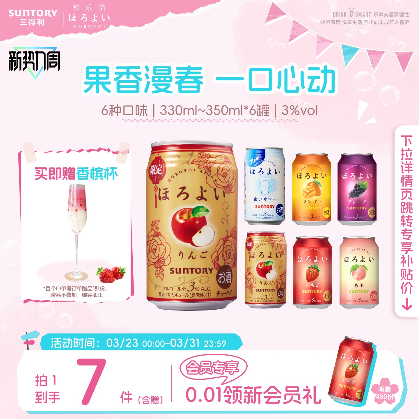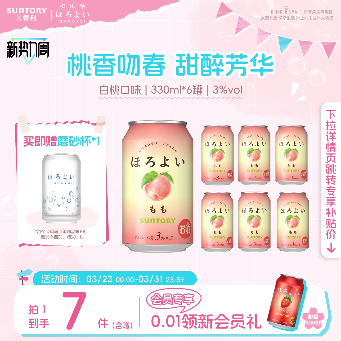 下拉详情领优惠|三得利和乐怡气泡预调鸡尾酒低度果酒6罐聚会3°