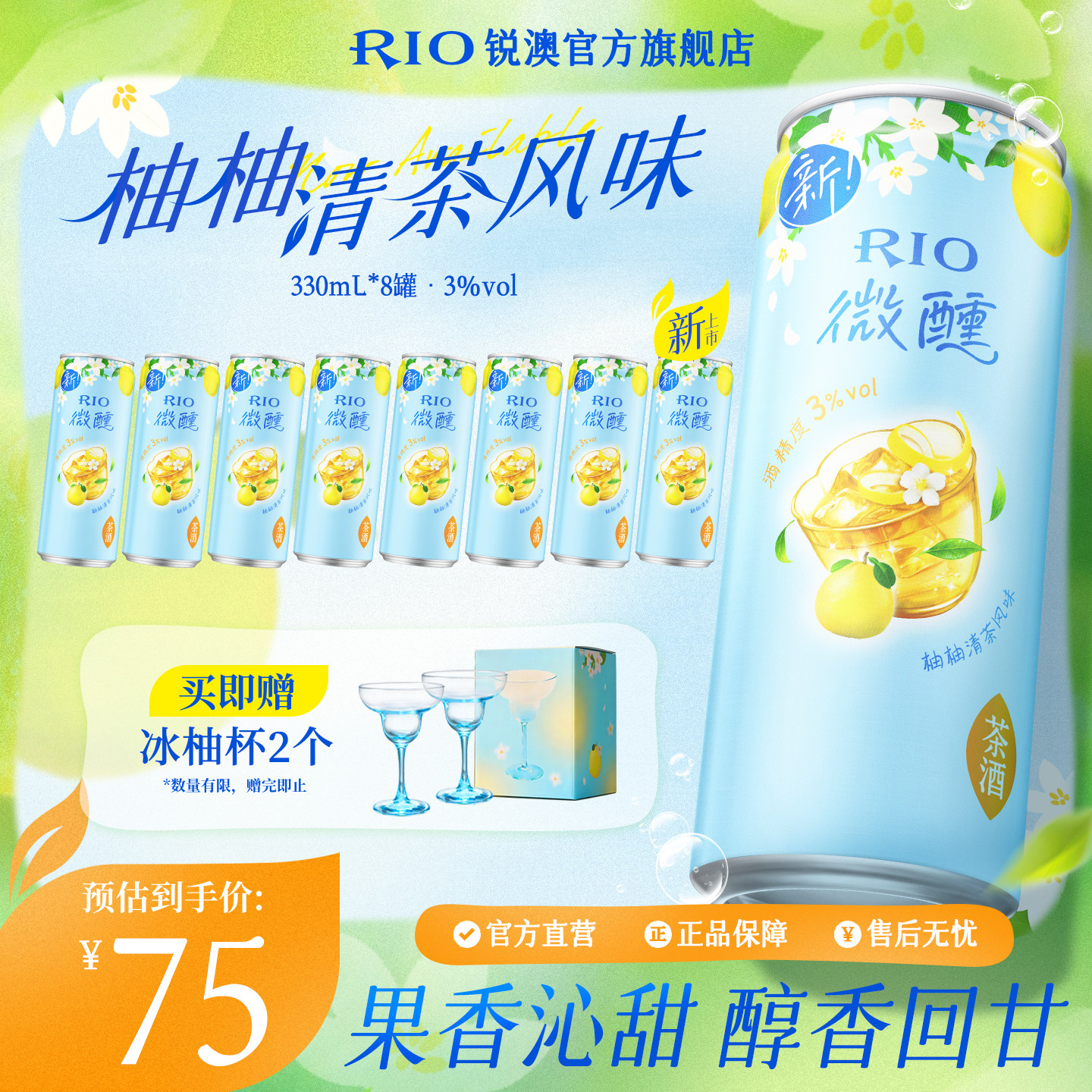 新品RIO锐澳预调鸡尾酒低度果酒柚柚清茶微醺330ml*8罐柚子酒