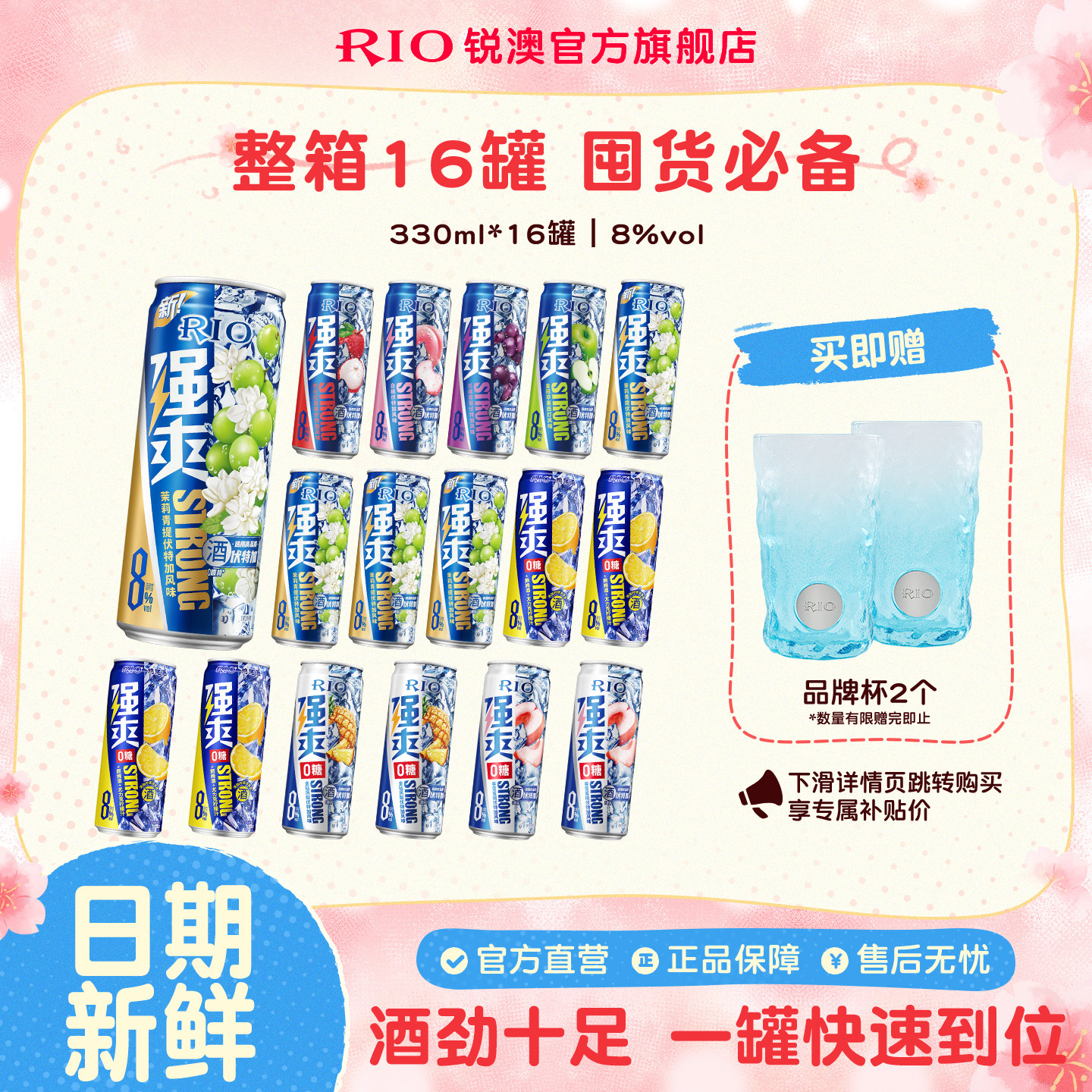 RIO锐澳预调鸡尾酒8度强爽330ml*16罐整箱果酒气泡酒囤货装不信邪