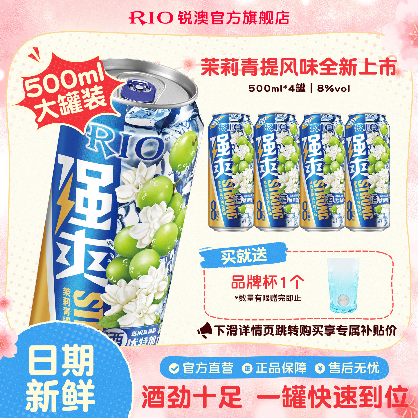 大罐装RIO锐澳预调鸡尾酒8度强爽500ml*4罐茉莉青提果酒不信邪