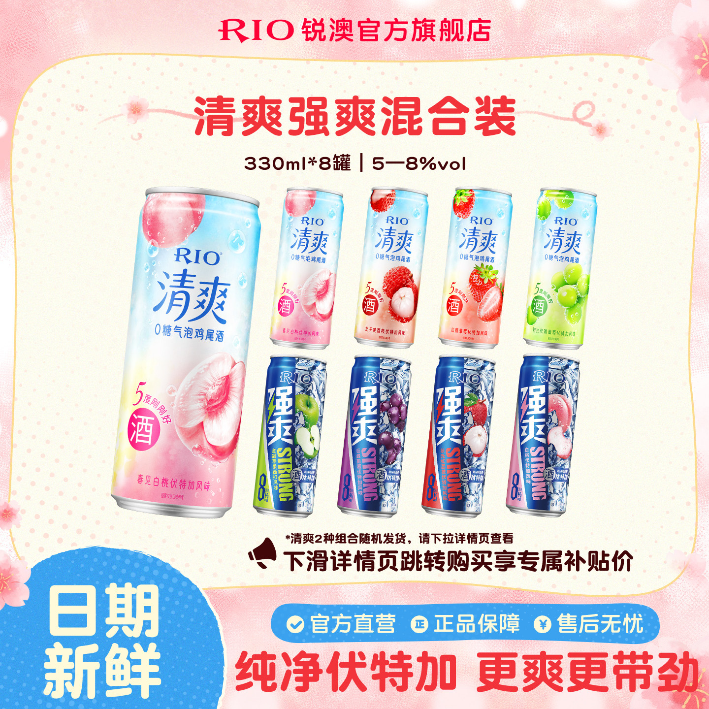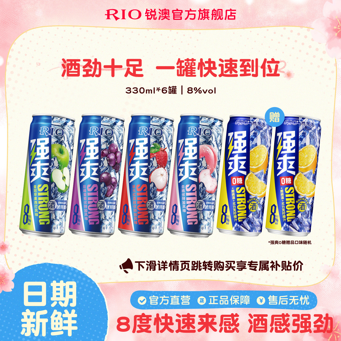 RIO锐澳预调鸡尾酒8度强爽0糖330ml*8罐低度气泡酒果酒伏特加